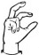 На ћирилици написано ЕМА КУРМАЗОВИЋ састоји се из 13 слова [?]. Исписано ћириличном једноручном азбуком за глувонеме: